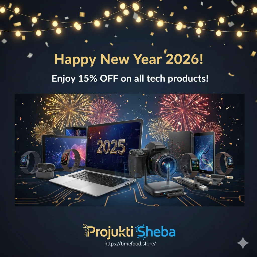 🎉 শুভ নববর্ষ ২০২৬! সব টেক প্রোডাক্টে পাচ্ছেন ১৫% ছাড় 🛍️ আজই কিনুন Projukti Sheba থেকে 💻📸📶 X